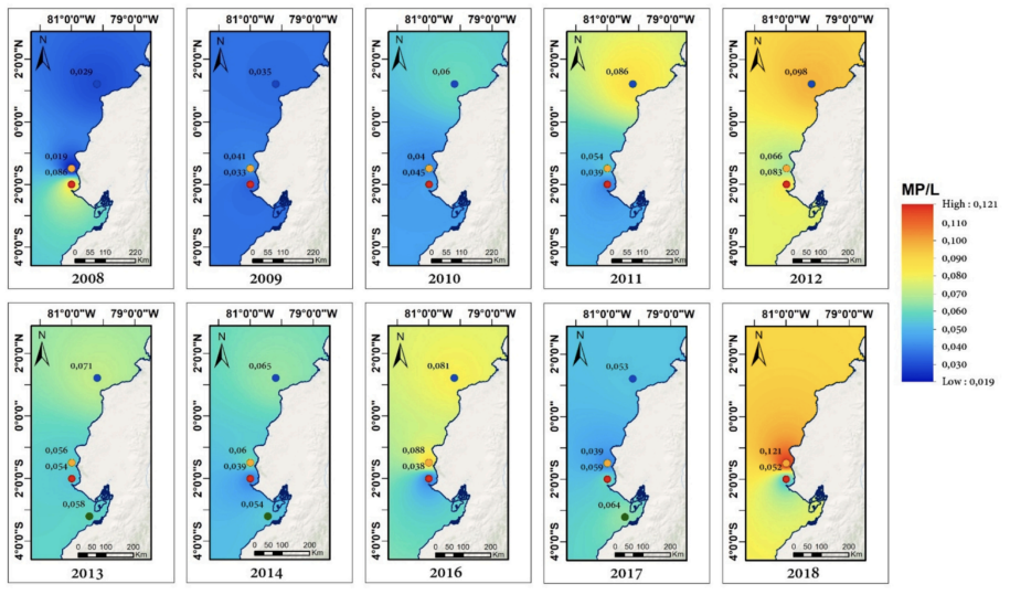 Bermúdez, J. R., Metian, M., Swarzenski, P. W., Bank, M. S., Bjorøy, Ø., Cajas, J., Bucheli, R., González-Muñoz, R., Lynch, J., Piguave, E., Vargas, N., Vilela, K., Calle, L., Borbor-Cordova, M. J., & Gaibor, N. (2025). Marine microplastics on the rise in the Eastern Tropical Pacific: Abundance doubles in 11 years and a ten-fold increase is projected by 2100. Marine Pollution Bulletin, 221, 118437. https://doi.org/10.1016/j.marpolbul.2025.118437