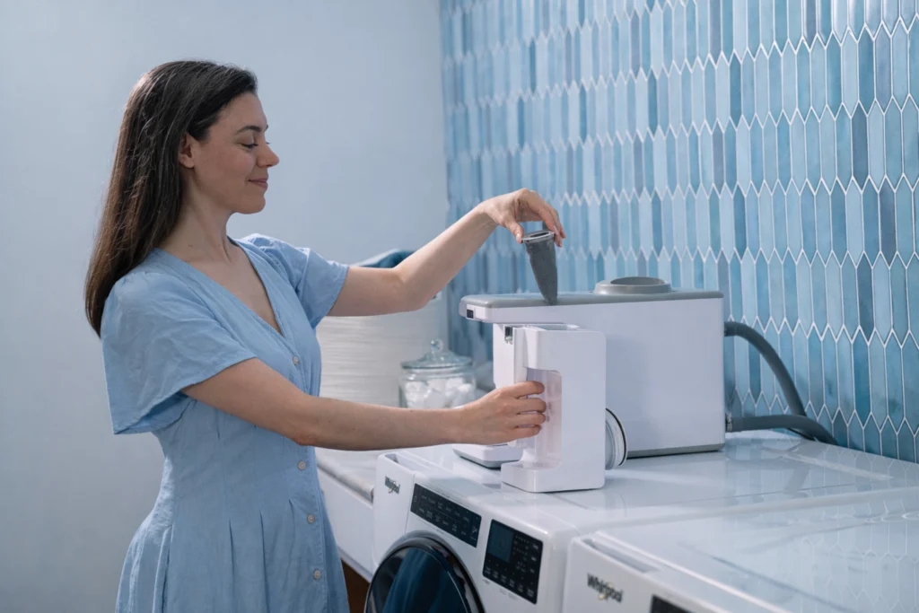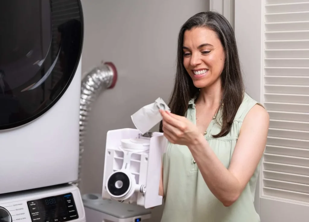 Put in a fresh pod so CLEANR can continue capturing microplastics load after load.