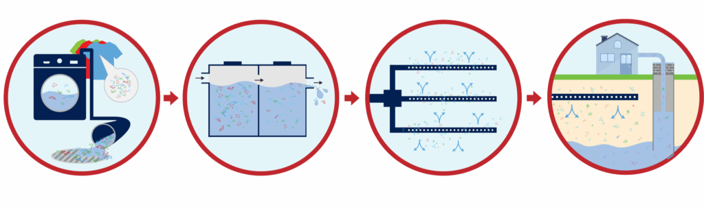 Stop your microplastic problems at the source. CLEANR can help protect you and your family from contaminated well water and prevent costly septic repairs by filtering out over 90% of microplastics from the clothes in your laundry.